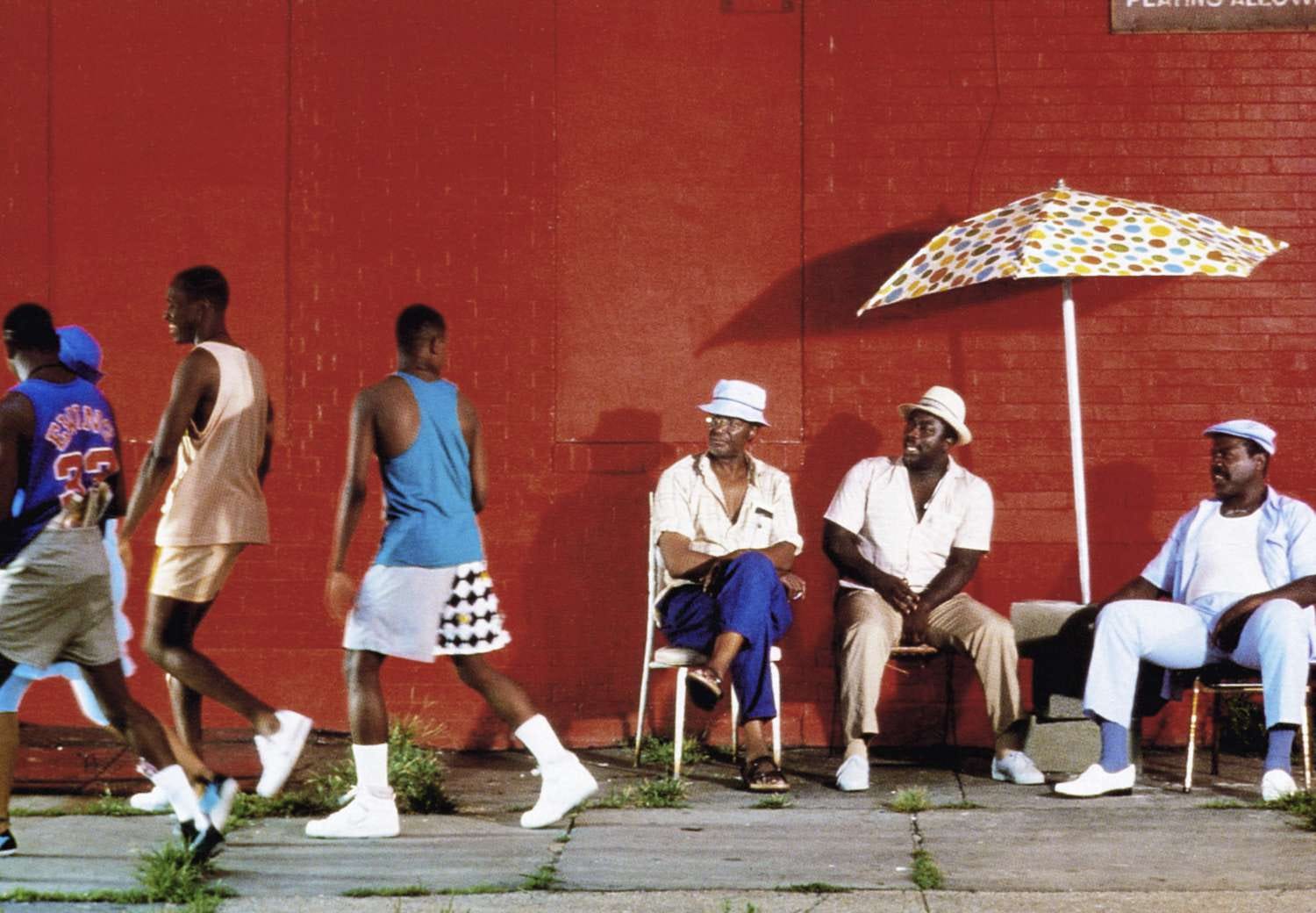 The movie’s younger characters sport colorful tank tops, graphic tees, and (of course) sneakers. Do the Right Thing secured a product placement deal with Nike, a natural fit in what would later become a decades long relationship between Lee and the brand.