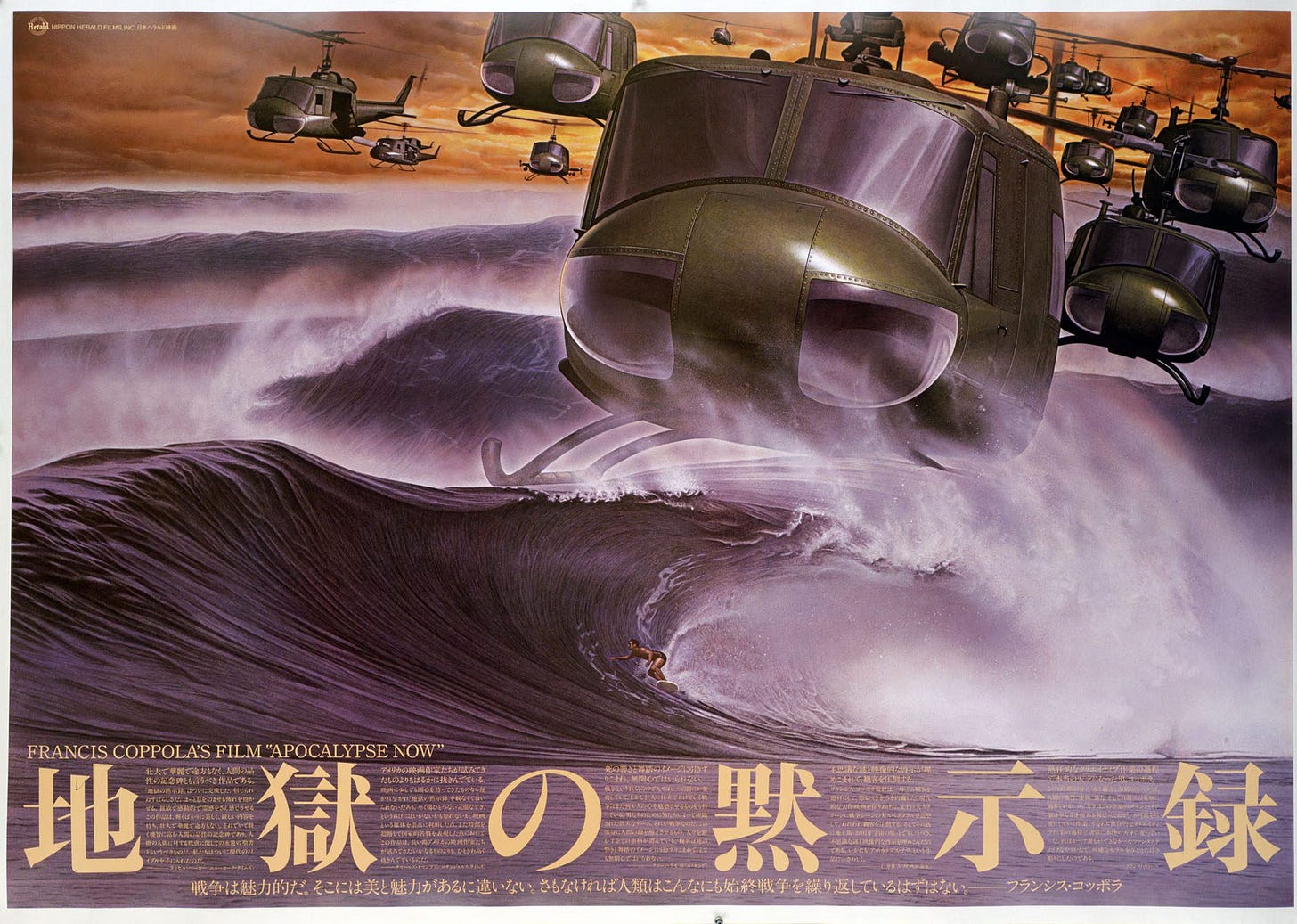 In 1979, Ishioka was hired to design the Japanese movie posters for Coppola’s Apocalypse Now. The director was already familiar with her work from Mishima: A Life in Four Chapters (1985) - it was Ishioka’s film debut as the production designer, and Coppola was one of the executive producers.