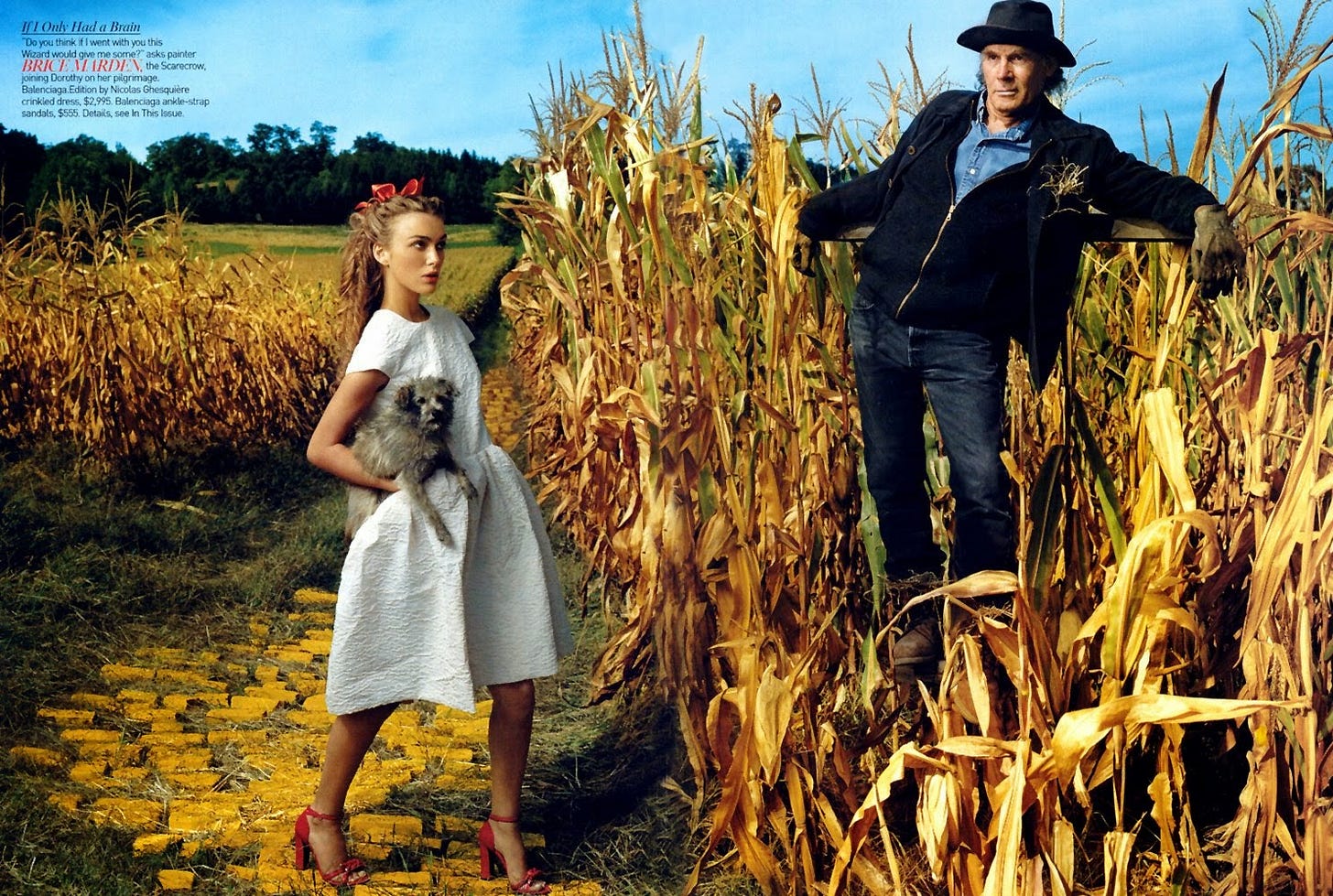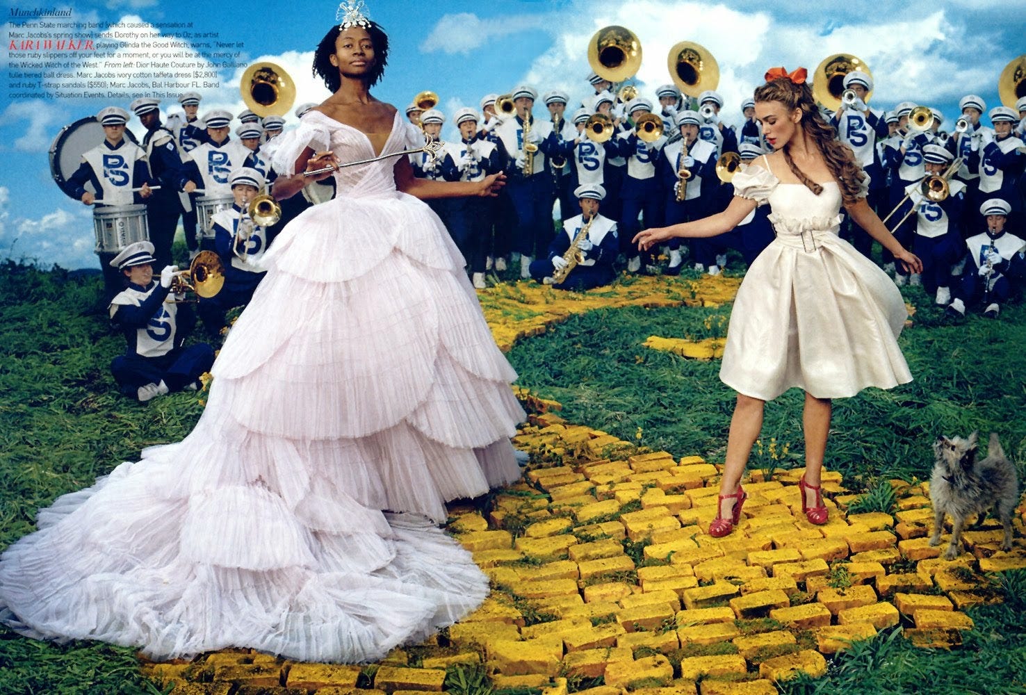 For Vogue’s December 2005 Issue, creative director Grace Coddington and photographer Annie Leibovitz conceptualized actress Keira Knightley as Dorothy, decked out in designer. Her journey through a high-fashion Oz featured famous contemporary artists as her fantasy companions.