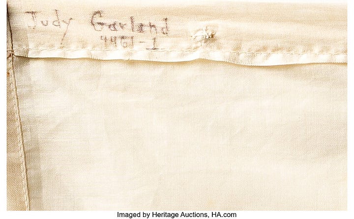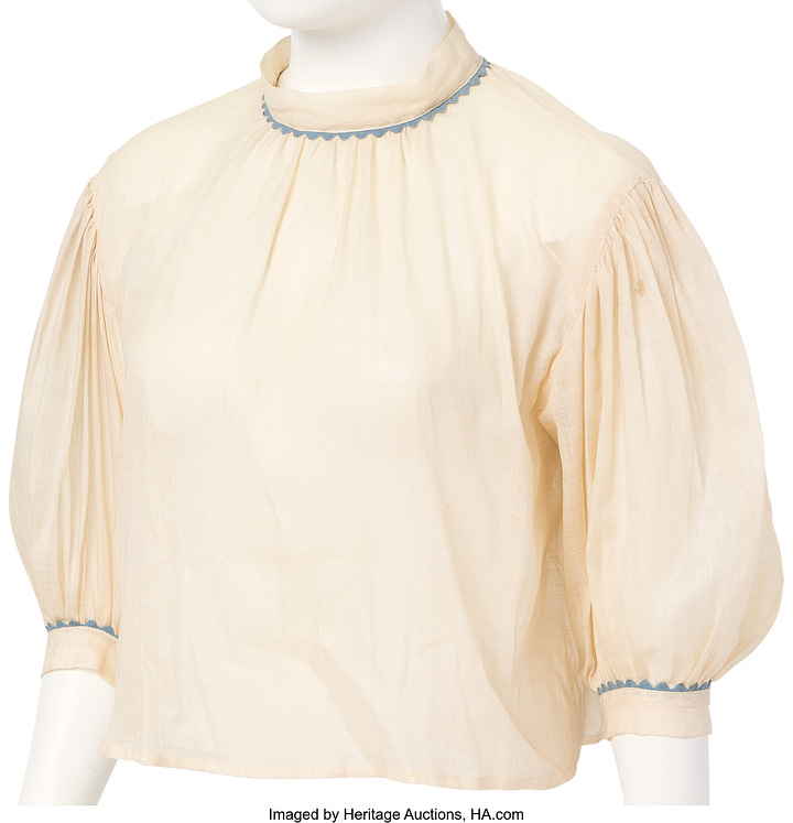 Next month, Heritage Auctions is selling an Oz memorabilia collection that includes an original blouse worn by Garland on screen. The auction listing for the top gives us a rare look at high quality photos of the blouse without the dress covering it, and includes a detailed description of its construction and history.