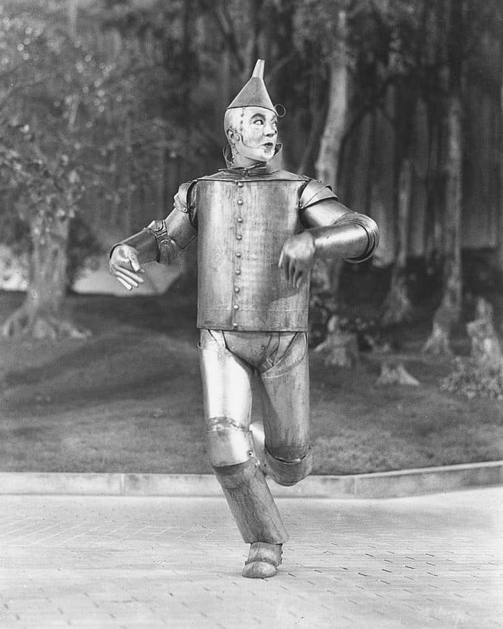 The “metal” suit worn by Jack Haley as the Tin Man was made of stiff fabric covered in leather. His robotic movements didn’t require much acting, as the suit was reportedly actually difficult to move in - sitting down was impossible. The “oil” applied to his joints in the movie was made of chocolate syrup.