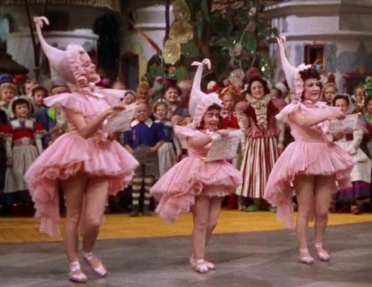 Some of my favorite costumes in Oz come from the whimsical fashion of Munchkinland. Over 100 costumes were created for the dozens of Munchkins, with each look photographed and cataloged to ensure the costumes and makeup remained consistent between days of filming. For some reason IMDB claims the Munchkin costumes were made “entirely of felt” - it appears plenty of felt was definitely used, but there are numerous surviving costumes that clearly include plenty of other fabrics.