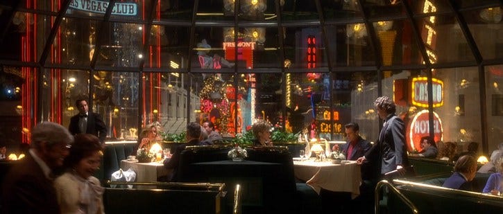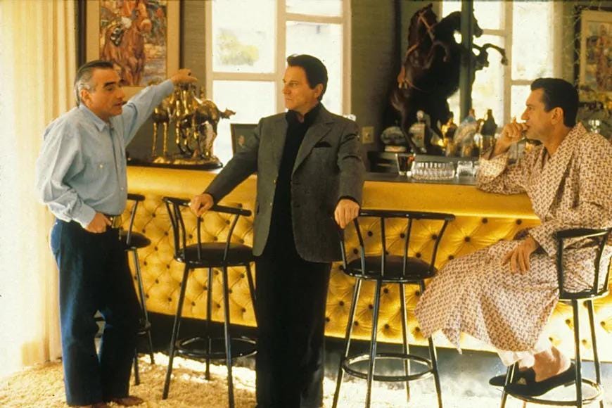 Casino illuminates a unique intersection of American excess, set in a particularly debaucherous decade in a particularly debaucherous city. The original story was based on the real lives of Frank Rosenthal, Geri McGee, and Anthony Spilotro, and the highly dramatic movie retelling is surprisingly more accurate than I would have expected. The movie was adapted for the screen from a non-fiction book by author Nicholas Pileggi, who worked on the screenplay alongside Scorsese. The stellar cast played perfectly alongside the film’s larger-than-life star: the city of Las Vegas itself.