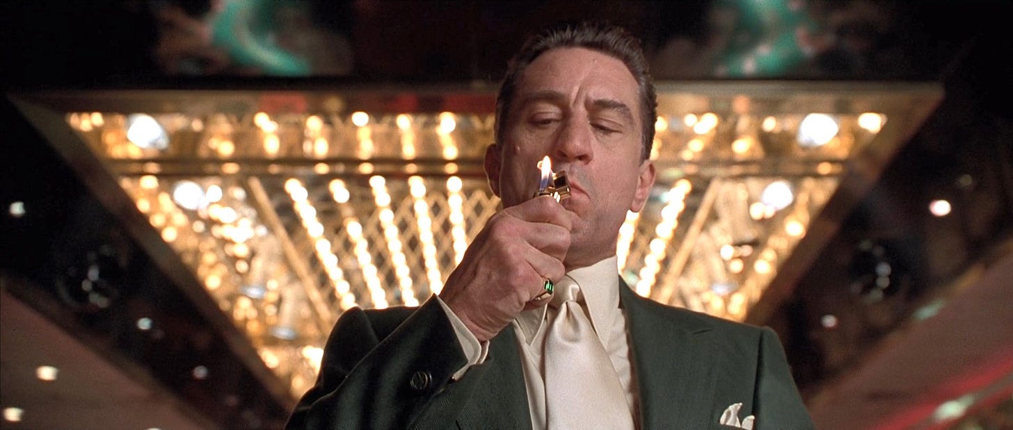 Costume designers Rita Ryack and John Dunn created a wardrobe with a reported budget of over a million dollars. Robert De Niro as Sam “Ace” Rothstein had over 70 different looks, while Sharon Stone as Ginger McKenna wore over 30 outfits. Beyond the numerous highly detailed looks for the main cast, the costume department was also responsible for over 7,000 extras, from blackjack dealers to showgirls. Much of Casino’s wardrobe was pulled from vintage archives to create an authentic 70’s-80’s look.