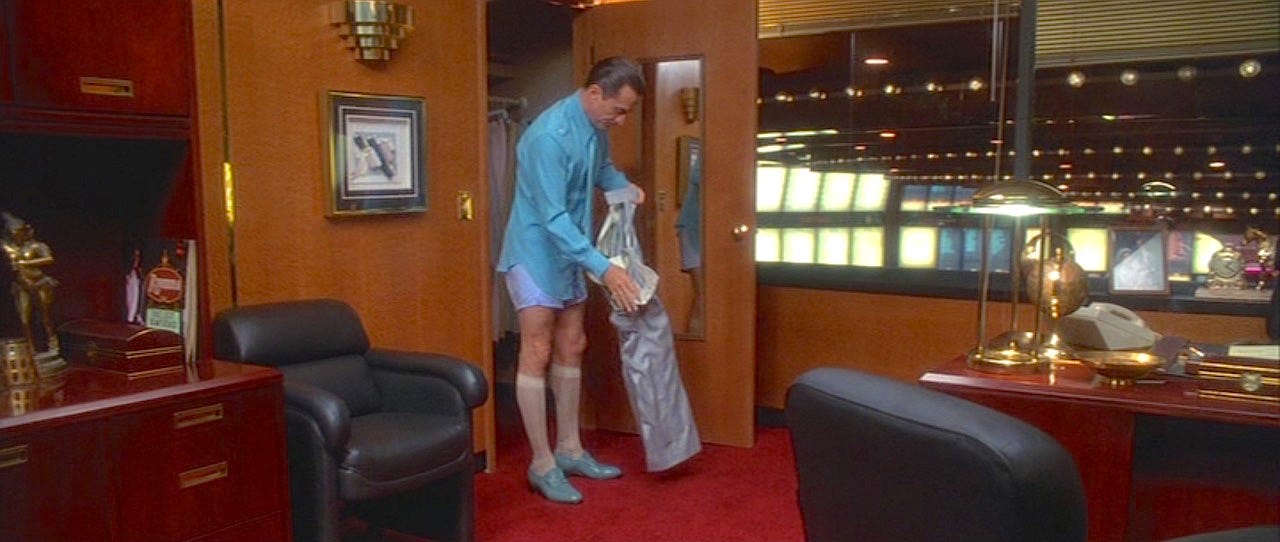 In an unforgettable scene, Ace stands up at his desk before a meeting to reveal that he isn’t wearing any pants. The character cares so much about his appearance that he works in his shirt and underwear so that he doesn’t wrinkle or ruin the creases in his crisply pressed suits.
