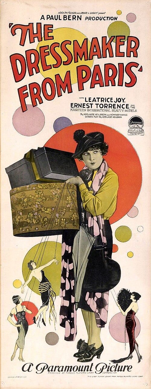 1925 saw the release of the silent romantic comedy The Dressmaker From Paris. Based on a synopsis in a film magazine review it was likely the first fictional fashion film, more in line with the big screen entertainment we think of as a “movie” today. However, the film was since lost, and there are no prints known to exist in any archive. Based on the (self-imposed) perimeters I assigned The 100 Fashion Films Project, Fashions of 1934 is the earliest viewable example I could find of the capital F Fashion Film.