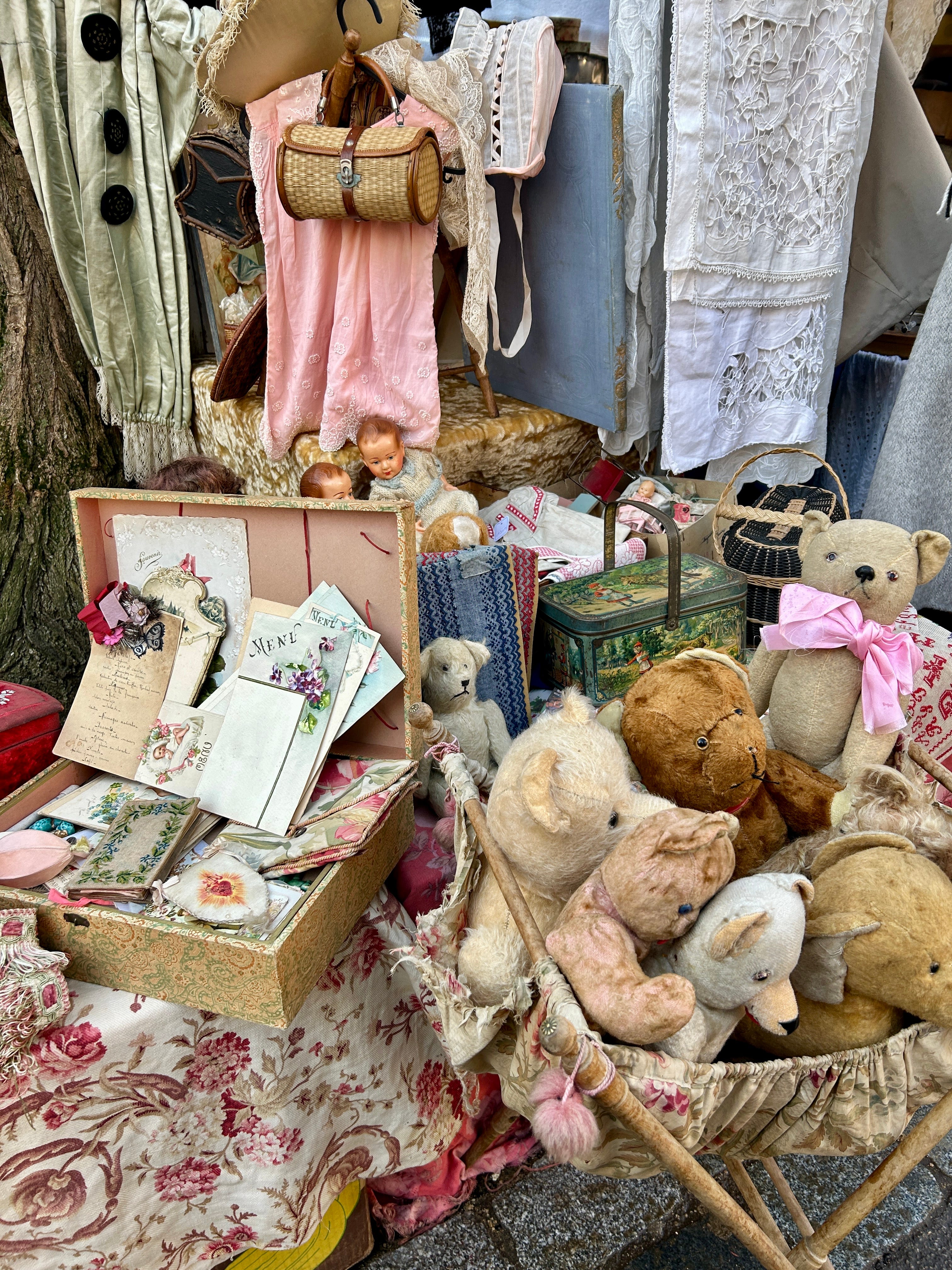It typically makes the most sense to start your days at flea markets, as they usually open hours before any brick and mortar shops. I personally don’t find a huge benefit in being the first in the booths (especially if you’re trying to haggle), so I never worry about rushing out for opening. My friend actually arrived to one of the Paris fleas exactly at the listed start time, and found that most vendors weren’t even set up yet.