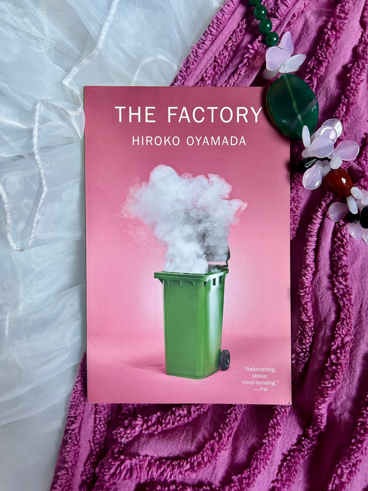 Once I looked past the intriguing cover, I noticed two more details that drew me in further: a Japanese woman was the author, and the teeny little blurb was mysteriously credited simply to PW. Book covers are typically so busy these days, their designs layered with embossed awards and blurbs from familiar names and banners that remind you that it’s Now a Major Motion Picture! Something about the complete lack of extra information made The Factory feel especially compelling - almost like it wasn’t even a real book.
