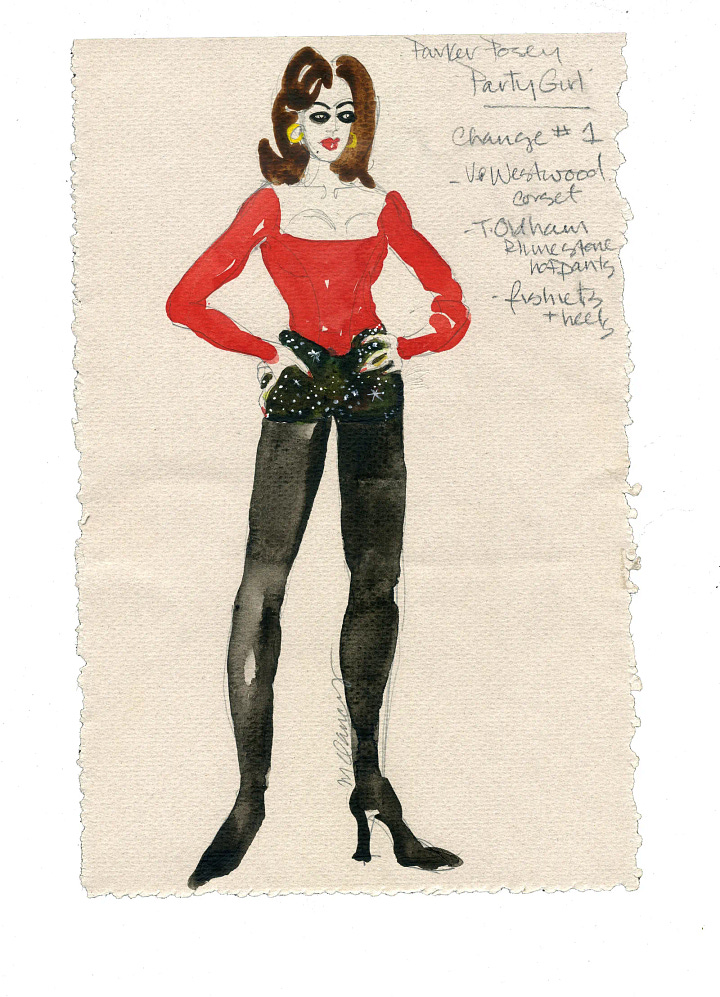 Clancy gathered pieces from the cast, crew, and other friends and connections, including designer Todd Oldham. The rhinestone hot shorts worn by Posey in the opening scene were an Oldham design, on loan to the film crew for just one day. In an interview with The Cut, Posey said, “A few things were mine, but they were mostly borrowed from other people.”