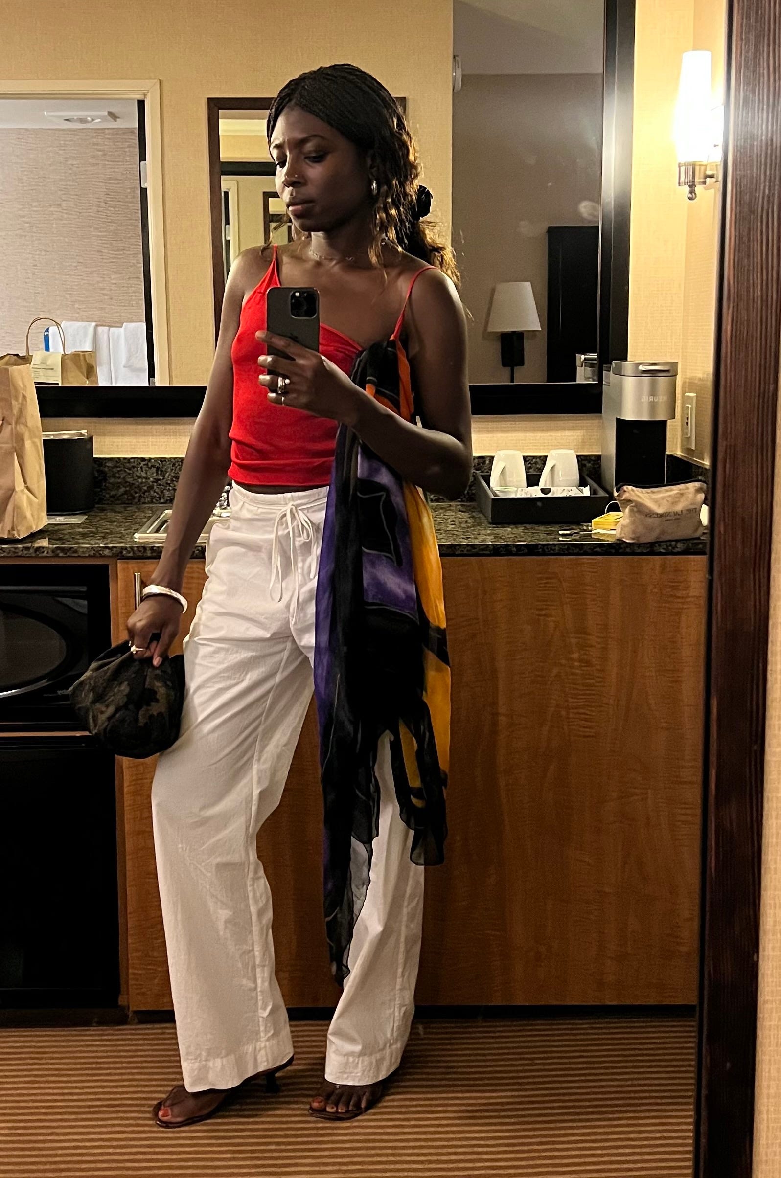 As I’ve slowly collected pieces for my big scarf collection, I’ve been keeping an eye on how scarves are being worn by the people I admire online. Here are a few screenshots and saves of my favorite looks I’ve seen lately starring a well-worn satin scarf.