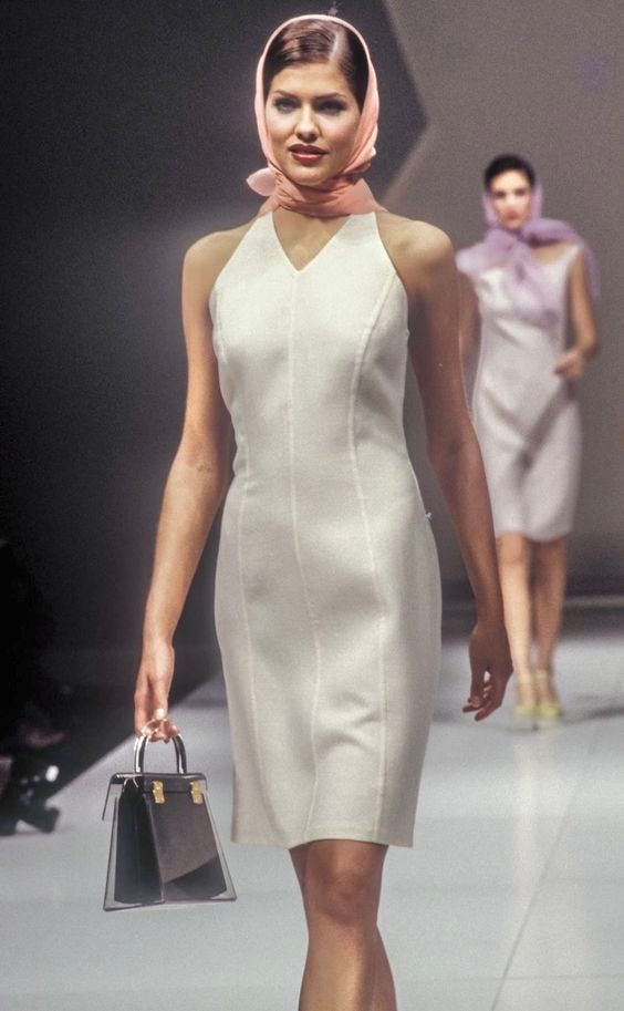 Essentially just a slinky little piece of fabric, a satin scarf is a true wardrobe hero. It’s useful, it’s beautiful, it’s versatile. It’s the one thing that you should always pack for a trip - it barely takes up any space, but can come in handy in a dozen different ways. Satin scarves have been a style mainstay for decades across all cultures and ages, giving us an endless array of inspiration to draw from. I’ve scoured the internet, from vintage images to modern day style stars, to bring you the best in how-to scarf styling through the eras.