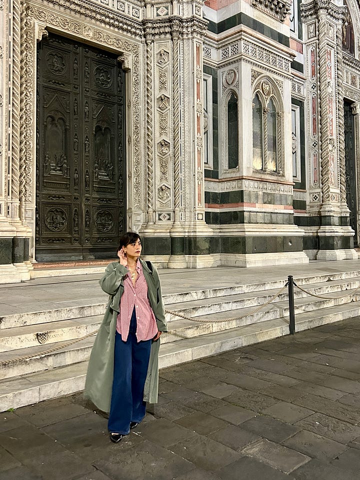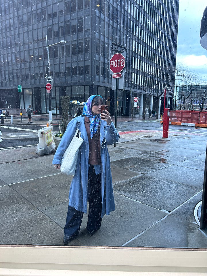The coats: dramatic hemlines, oversized lapels, shiny rain-repellent fabrics that pick up the wind just right when you walk.